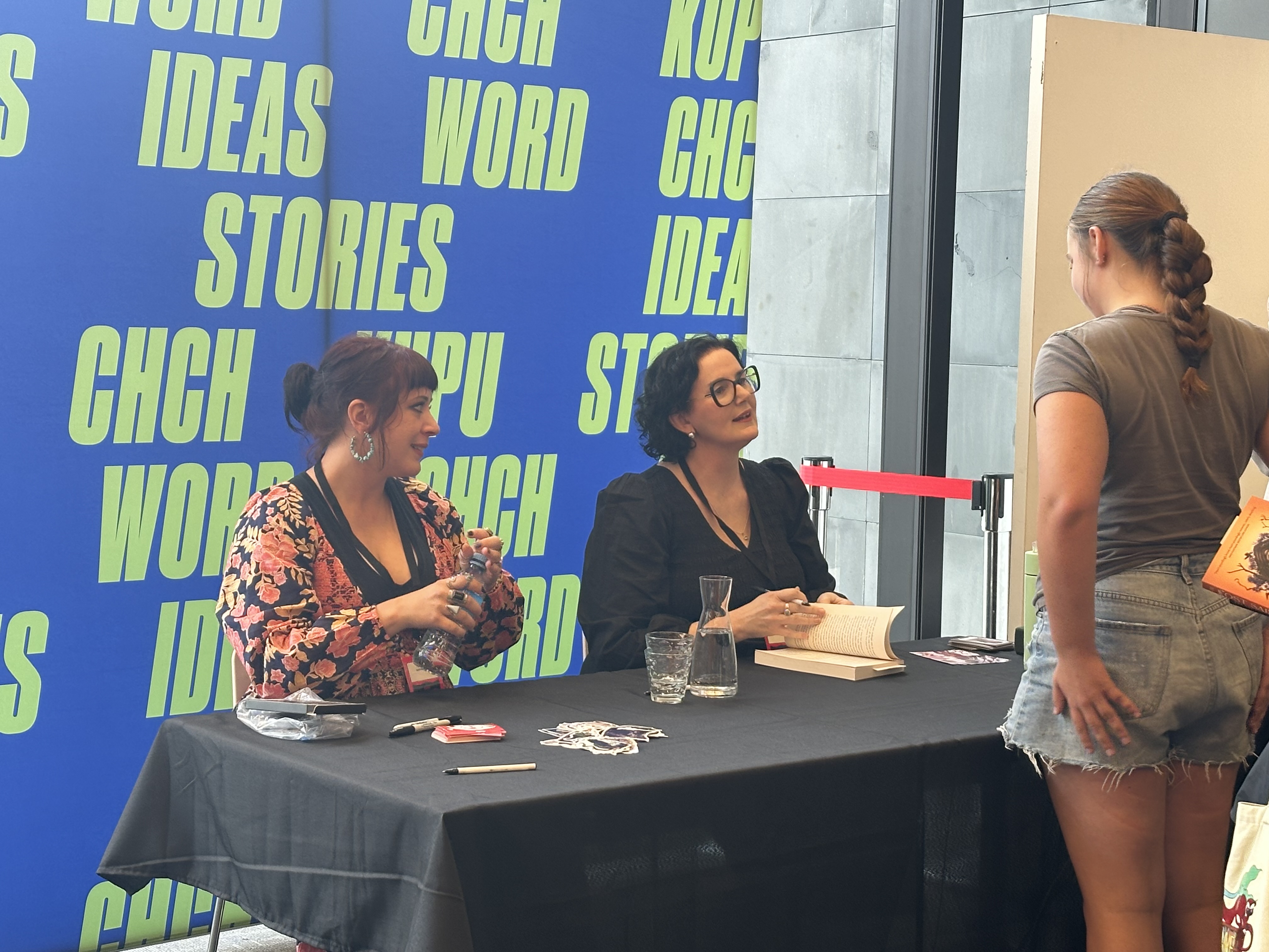 After the panel, Craw and Eames kindly signed books for fans... although A Harvest of Hearts is technically not published in physical form in New Zealand yet, so Eames instead signed slips that could be put into pre-purchased books when they arrive. She even added cute Cornelius stickers!
